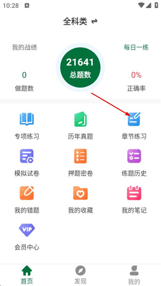 1、在首頁點擊章節(jié)練習選項,進入章節(jié)練習分類頁面。