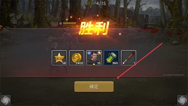 4、戰(zhàn)斗勝利后獲得EXP、金幣等獎勵,點(diǎn)擊確定領(lǐng)取獎勵并推進(jìn)關(guān)卡。