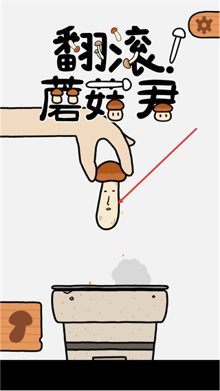 1、進(jìn)入翻滾蘑菇君游戲后,按照提示拖動手中的蘑菇朝下方的鍋的方向移動,使其掉落至鍋的位置以推進(jìn)游戲流程。