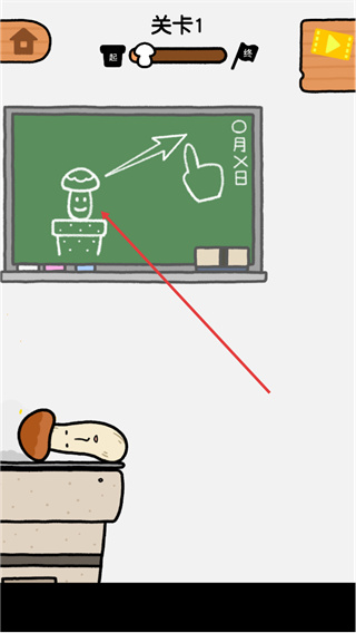 2、在關(guān)卡中,參照黑板上的箭頭提示,操控蘑菇向箭頭所指方向移動,使其到達(dá)對應(yīng)位置來完成本關(guān)基礎(chǔ)任務(wù)。