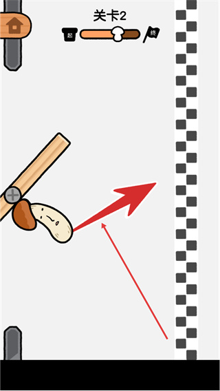 3、處于關(guān)卡時,借助傾斜木板調(diào)整蘑菇翻滾方向,朝著右側(cè)黑白格終點推進(jìn),讓蘑菇抵達(dá)該區(qū)域完成本關(guān)卡。