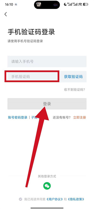 4、點擊獲取驗證碼,將收到的短信驗證碼填入欄后,點擊登錄,即可完成賬號登錄。