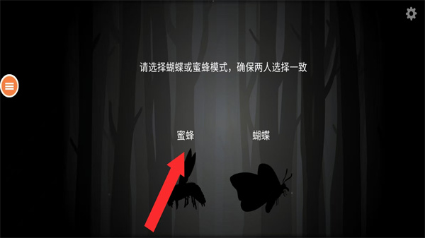 2、后續(xù)在模式選擇界面,點擊紅色箭頭指向的蜜蜂選項需與另一角色選擇一致,完成雙人統(tǒng)一選擇的劇情要求。