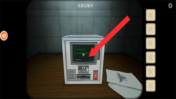 3、進(jìn)入房間場景后,點擊紅色箭頭指向的老式電腦屏幕,放大查看設(shè)備信息,獲取劇情相關(guān)的提示內(nèi)容。