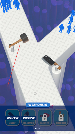 1、拾取場景中的HAMMER武器,裝備到武器欄,準備抵御藍色敵人。