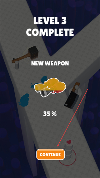 4、通關LEVEL3后,顯示NEWWEAPON解鎖提示,點擊CONTINUE進入下一關。