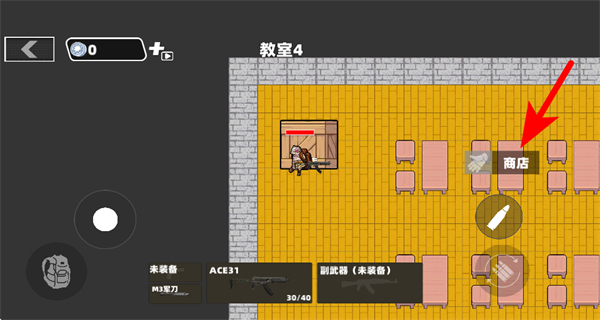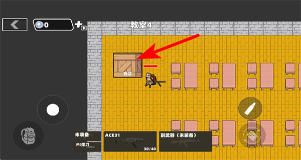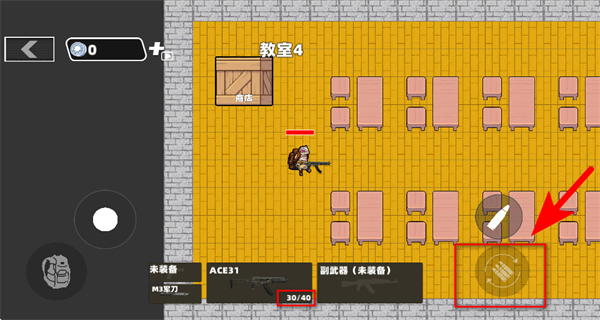 1、在教室場(chǎng)景中,點(diǎn)擊右側(cè)的換彈按鈕,為當(dāng)前武器補(bǔ)充彈藥,確保后續(xù)戰(zhàn)斗的火力續(xù)航。