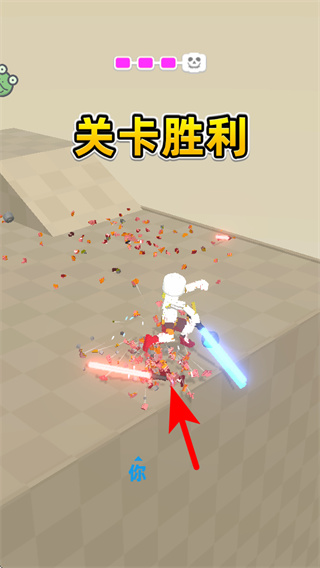 3、當敵方血量耗盡時,完成最后一擊如出現(xiàn)關卡勝利提示,確認紅色箭頭指向的目標被擊敗,達成目標。
