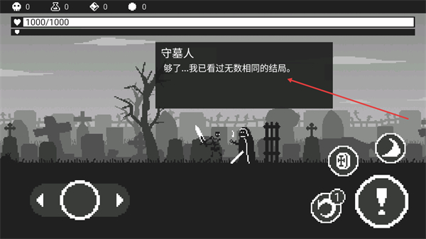 3、戰(zhàn)斗中觸發(fā)守墓人的對(duì)話,查看其臺(tái)詞內(nèi)容后,繼續(xù)推進(jìn)戰(zhàn)斗進(jìn)程,保障角色的戰(zhàn)斗狀態(tài)。