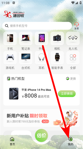 1、進入速回收,點擊底部我的,進入個人頁面。