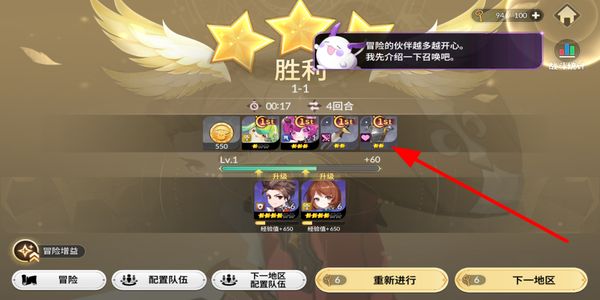 2、戰(zhàn)斗勝利后進入結(jié)算界面,獲取金幣和經(jīng)驗值等獎勵,還能對角色進行升級操作,提升其戰(zhàn)斗能力。