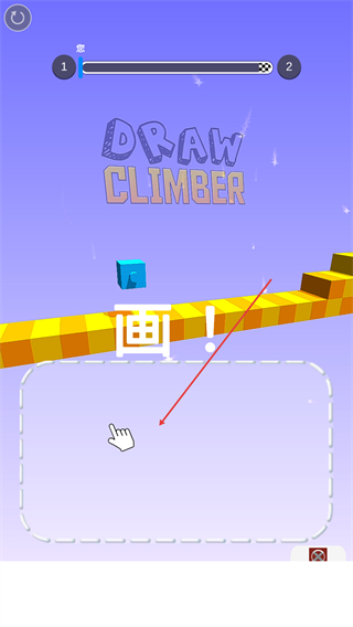 1、進入DRAWCLIMBER關(guān)卡,按提示在繪制區(qū)域畫腿,助力藍色方塊前進。