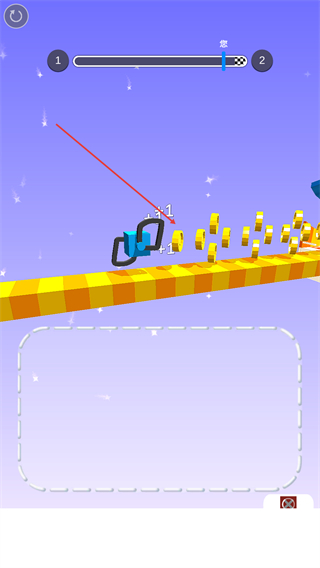 4、方塊移動過程中收集金幣,借助畫的腿繼續(xù)前進,向關(guān)卡終點推進。