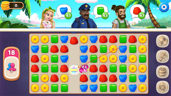 三消關(guān)卡難度梯度設(shè)計合理,經(jīng)營環(huán)節(jié)無緊迫的時間限制,玩家可隨時暫停或繼續(xù)游戲,無論是碎片時間還是休閑時段,都能輕松享受游戲樂趣。