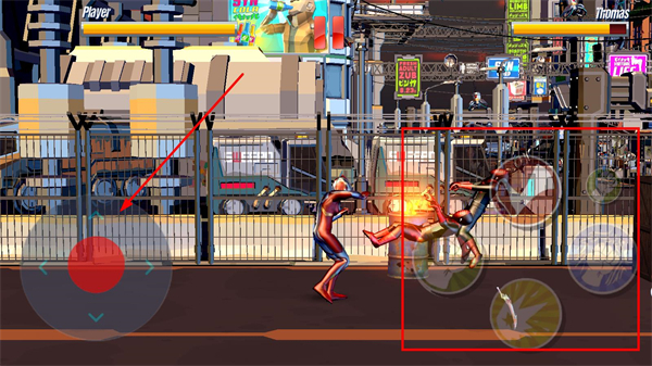 2、通過左側的方向按鈕控制角色在場景內移動,調整位置靠近對手,為后續(xù)釋放攻擊技能或躲避傷害做鋪墊。