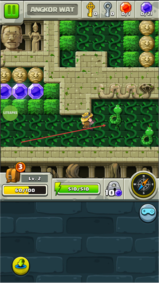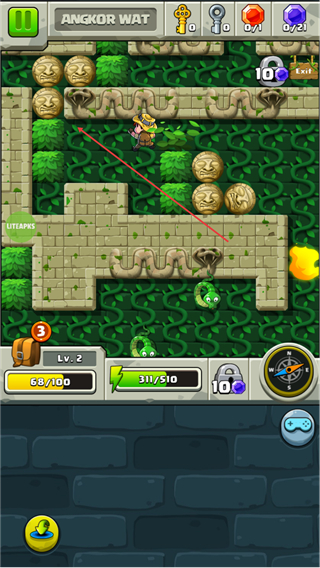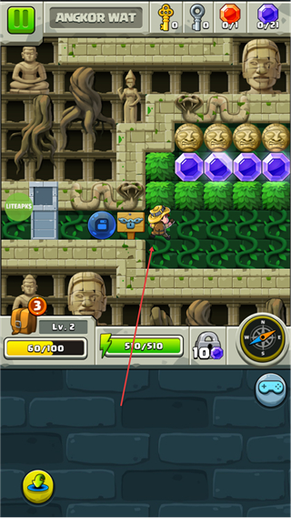 1、在ANGKORWAT場景操控角色移動,收集路徑上的道具,推進關(guān)卡。