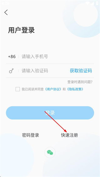 3、在用戶登錄頁面,點(diǎn)擊快速注冊選項(xiàng),可進(jìn)入用戶注冊頁面。