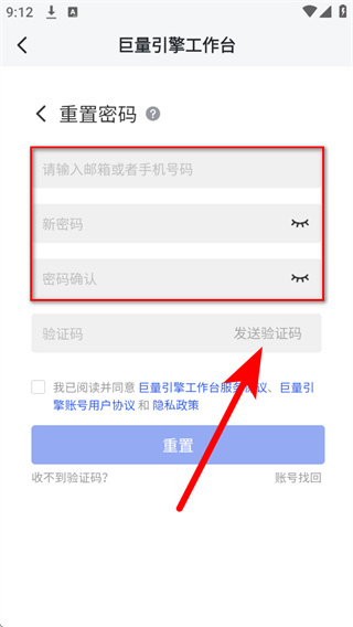 3、在重置密碼界面,填寫相關(guān)的信息,然后點(diǎn)擊發(fā)送驗(yàn)證碼。
