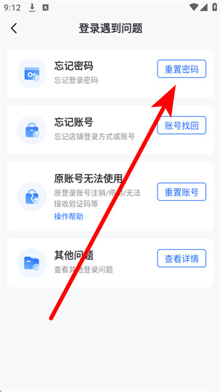 2、在登錄遇到問題頁(yè)面,點(diǎn)擊忘記密碼選項(xiàng),進(jìn)入重置密碼界面。