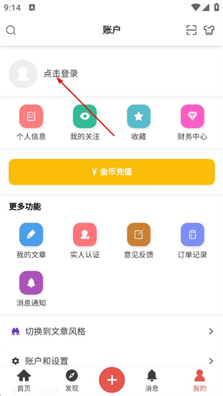2、在個(gè)人賬戶頁面,點(diǎn)擊點(diǎn)擊登錄區(qū)域,進(jìn)入登錄選擇頁面。