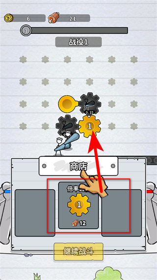 2、接著鎖定商店里的倍率齒輪,花資源拿下它,往槽位一放,戰(zhàn)斗收益直接翻個(gè)倍。