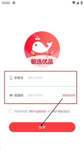 3、在登錄頁面,填寫手機號和驗證碼,再點擊登錄,完成登錄操作。