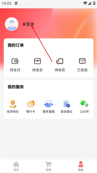2、隨后我們可以在個人頁面,點擊未登錄區(qū)域,進入登錄頁面。