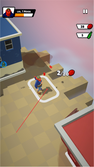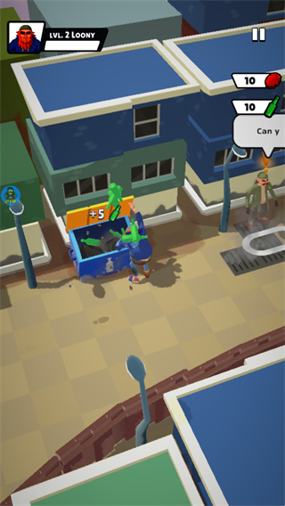 1、操控角色移動(dòng)到粉色垃圾桶處翻找,獲取紅色道具,積累資源并提升右上角道具數(shù)量。