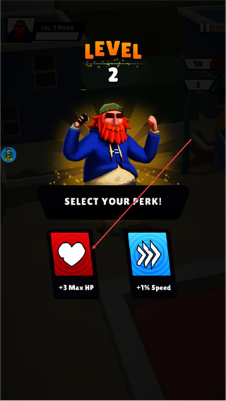 3、通關(guān)后進(jìn)入perk選擇界面,可挑選+3MaxHP或+1%Speed提升角色能力,這里選擇生命加成增強(qiáng)生存力。