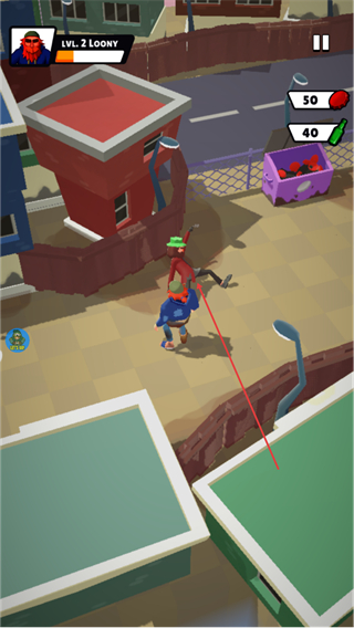 2、移動到藍色垃圾桶區(qū)域,與其他角色互動觸發(fā)戰(zhàn)斗,擊敗對手后繼續(xù)翻找垃圾桶,積累道具與資源。