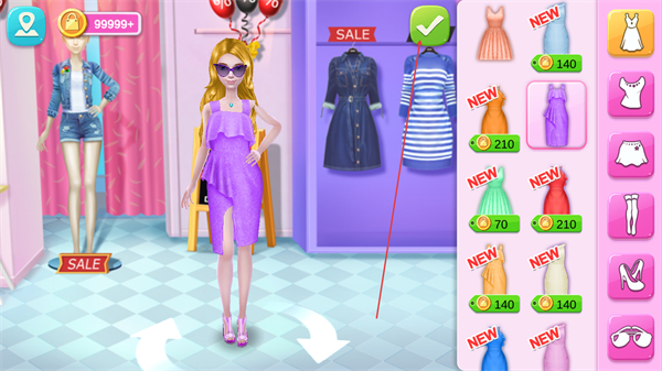 2、海量時(shí)尚單品隨心搭配,收錄上千款當(dāng)季潮流與經(jīng)典服飾、配飾,從襯衫、裙子到包包、飾品一應(yīng)俱全,動(dòng)態(tài)物理效果還原面料垂墜感,滿足個(gè)性化造型需求。