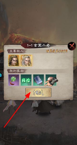 1、劇情查看關(guān)卡的主要敵人與勝利獎勵,確認后點擊挑戰(zhàn),進入關(guān)卡的戰(zhàn)斗環(huán)節(jié),推進游戲挑戰(zhàn)。