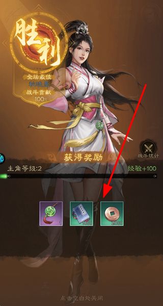 3、戰(zhàn)斗勝利后會顯示全場最佳角色,同時獲得等級提升與各類獎勵,點擊即可領(lǐng)取獎勵。