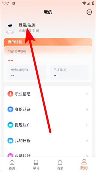 2、在我的頁(yè)面,點(diǎn)擊登錄注冊(cè),進(jìn)入登錄注冊(cè)界面。