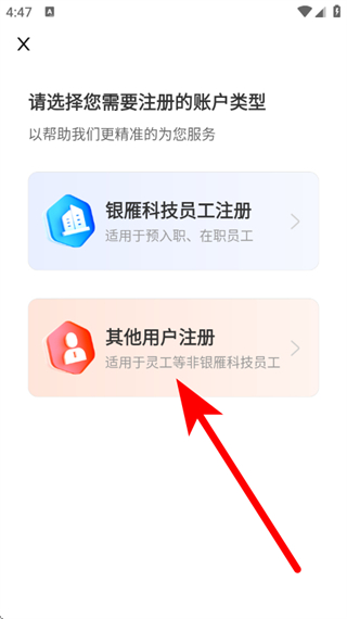 4、在賬戶類型選擇頁(yè)面,點(diǎn)擊其他用戶注冊(cè),進(jìn)入注冊(cè)頁(yè)面。