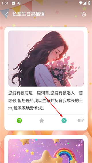3、在詳情頁面,點擊箭頭按鈕,可進入制作卡片頁面。