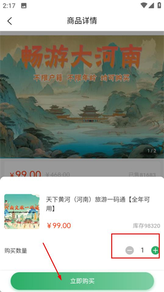 4、在購買頁面選擇數(shù)量后,點擊立即購買按鈕即可完成購買流程。