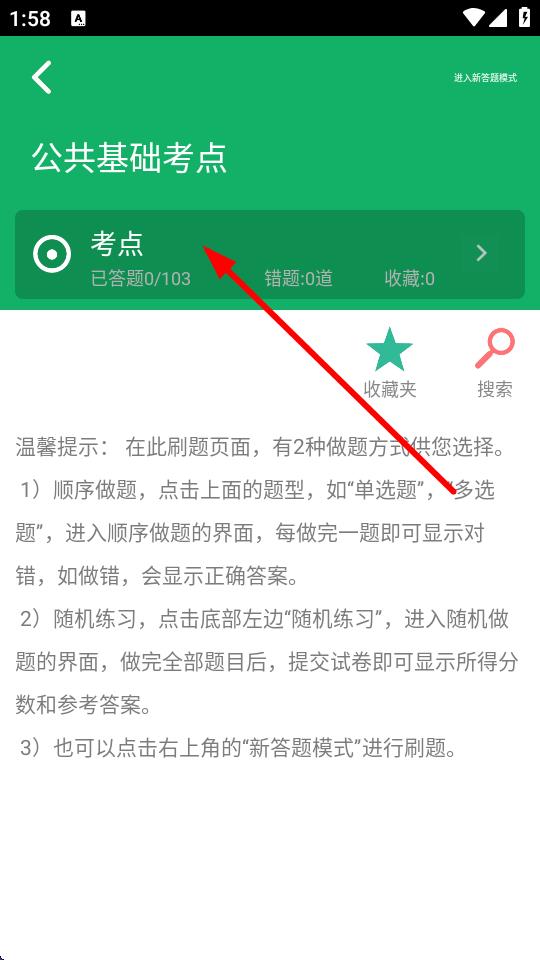 3、在公共基礎(chǔ)考點詳情頁,點擊考點,進入具體考點學習頁面。