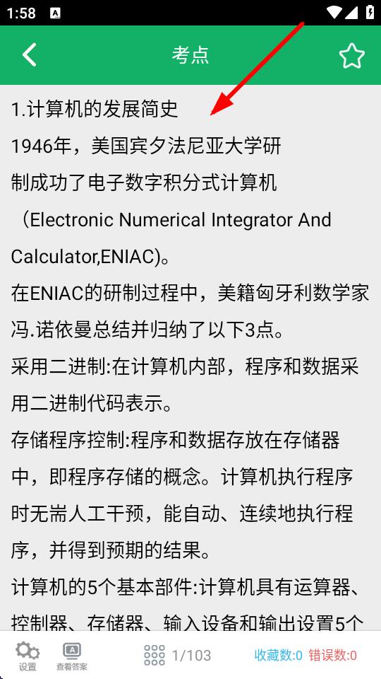 4、進入考點學習的頁面后,即可以進行查看具體的考點內(nèi)容。
