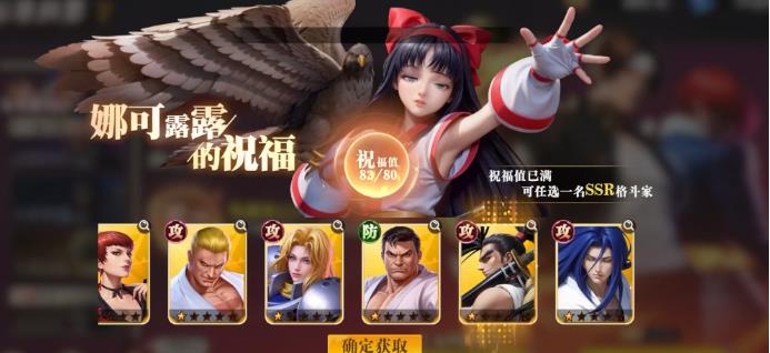 1、娜可露露祝福在標(biāo)準(zhǔn)招募卡池累計(jì)80次后觸發(fā),觸發(fā)后可從頁面中任選一名SSR格斗家獲取,除大蛇等稀有角色外多數(shù)普通SSR均可選擇,是補(bǔ)充陣容核心的關(guān)鍵途徑。