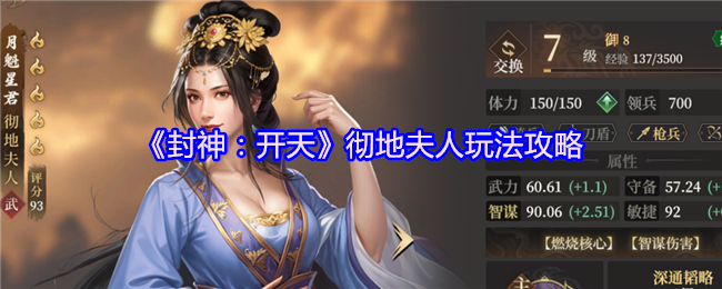 封神開天里徹地夫人是XP1賽季破陣先鋒卡包中的重要武將作為燃燒隊(duì)核心她自帶術(shù)法深通韜略能通過(guò)普攻對(duì)至多四個(gè)目標(biāo)造成2次智謀傷害打出爆炸輸出。很多玩家想了解她的技能和陣容搭配她既可以當(dāng)作不帶禁療的辛環(huán)也能作為雷鵬平替。接下來(lái)會(huì)從獲取方式定位特點(diǎn)陣容搭配和術(shù)法選擇等方面詳細(xì)介紹幫助玩家更好地使用這個(gè)武將感受她在戰(zhàn)斗中的強(qiáng)大實(shí)力。