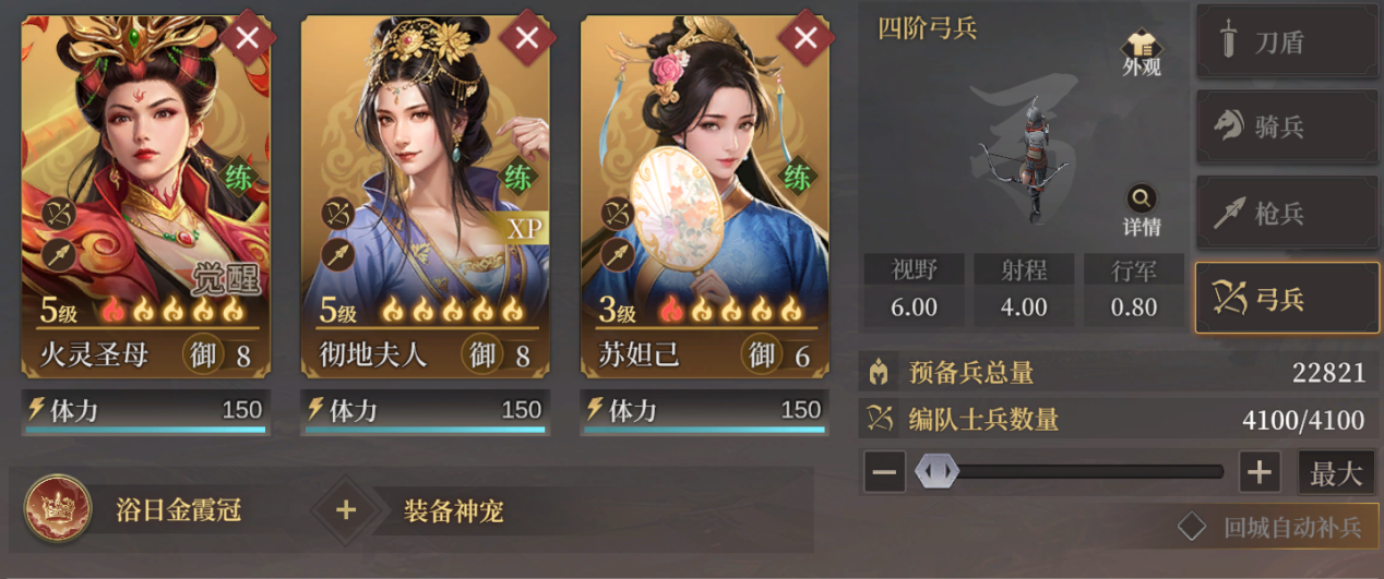 4、陣容搭配推薦燃燒弓組合火靈圣母加徹地夫人加蘇妲己蘇妲己提升全隊(duì)智謀傷害帶回藍(lán)術(shù)法續(xù)航火靈圣母和徹地夫人發(fā)動(dòng)術(shù)法靈寶打出高頻次群體智謀傷害。