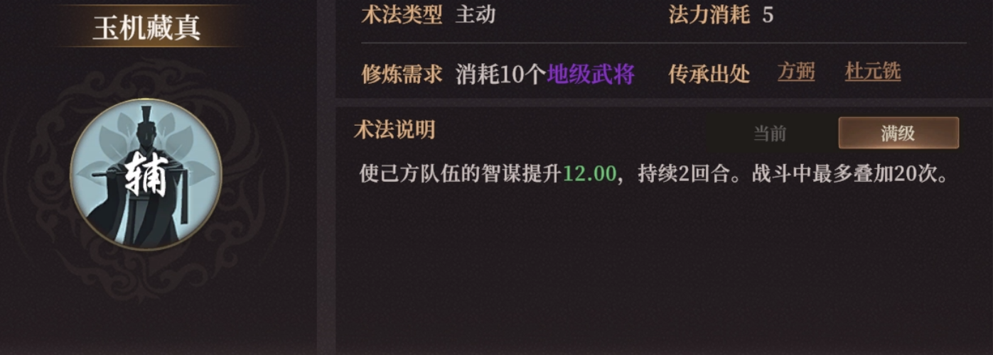 5、術(shù)法選擇帶高倍率智謀傷害型如天翻地覆聳木擊雷五毒侵體等也可帶沉默禁療等負(fù)面效果術(shù)法因兩個(gè)輸出武將觸發(fā)術(shù)法概率高第三位武將可帶續(xù)航術(shù)法回藍(lán)。