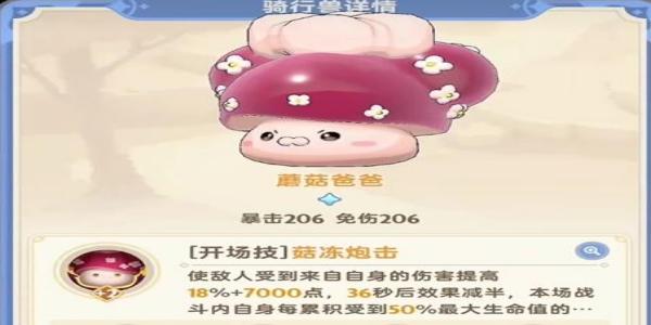 2、蘑菇爸爸是純T劍士的推薦坐騎,但實際效果不如陸行雀,更適合作為掛件坐騎使用。主坐騎仍建議選擇陸行雀,搭配雙免傷坐騎以增加屬性,提升坦度和生存能力。
